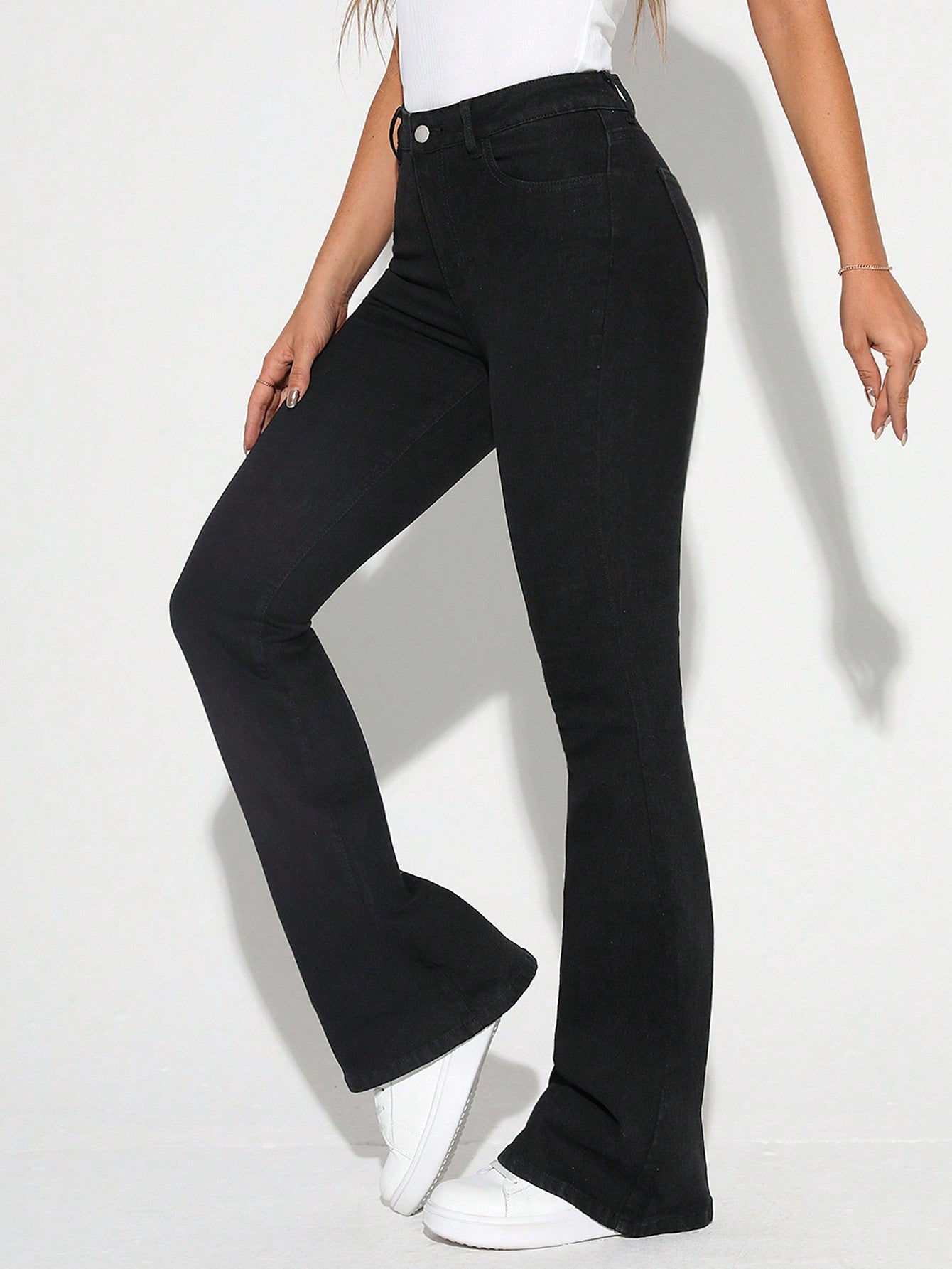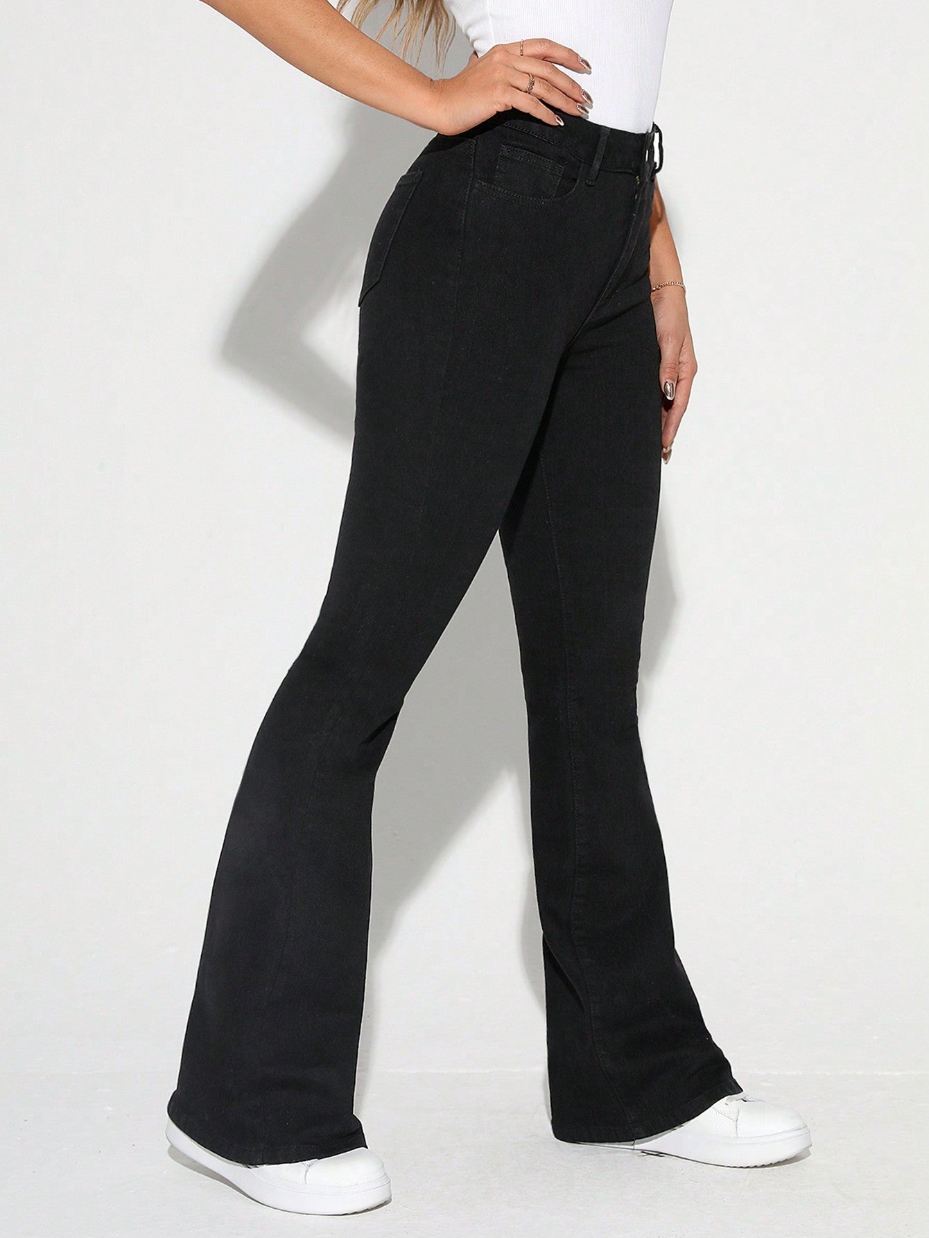 Refined, confident, and endlessly versatile—the Noire Luxe Bell Jean is a wardrobe icon for the woman who leads with quiet glamour. Crafted from our VelvetHold™ performance denim, this piece offers a rich, jet-black finish with a luxe, barely-there sheen. The silhouette is sculpted to hug through the hips and release into a fluid flare, recalling the confident shapes of vintage couture.