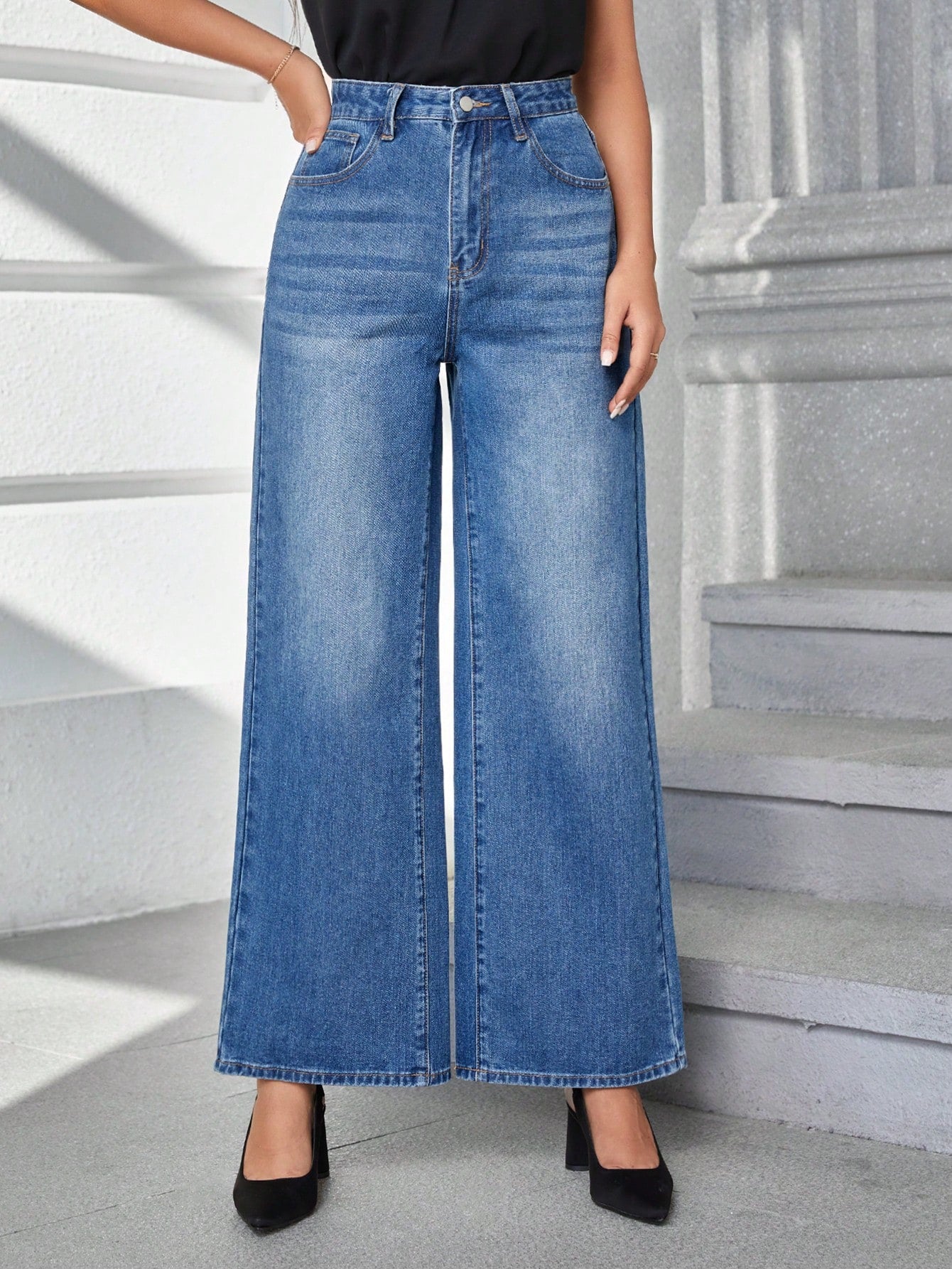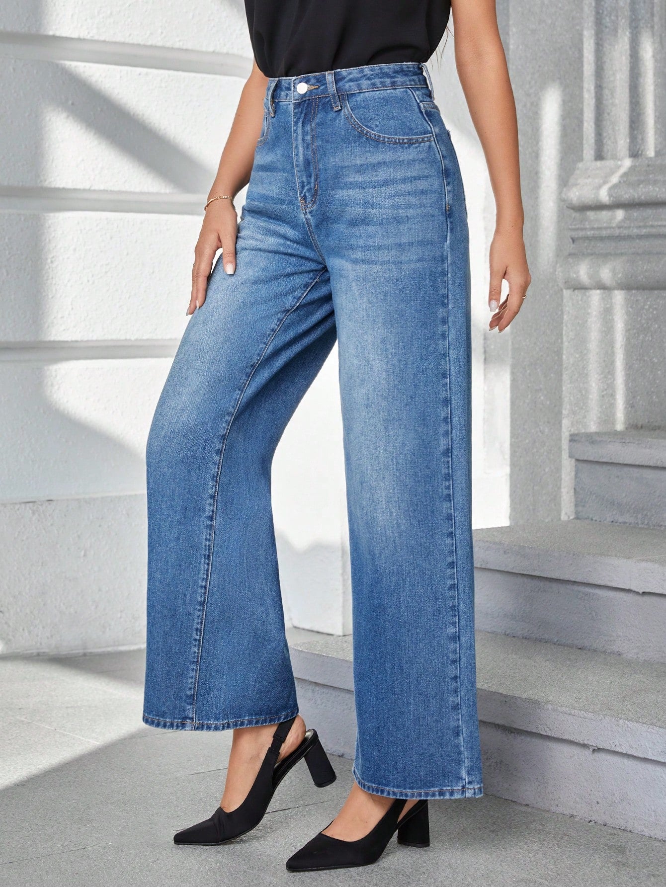 Subtle whiskering across the upper hip adds dimension and authenticity, enhancing the faded cerulean hue with the illusion of light play. Tailored yet nonchalant, this style evokes the woman who favors thoughtful drama—elevated in finish, effortless in wear.