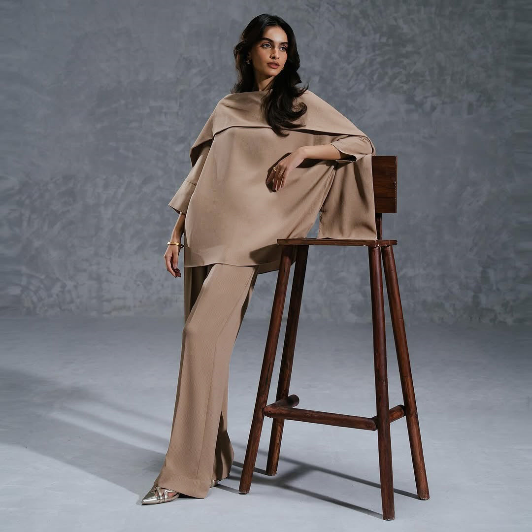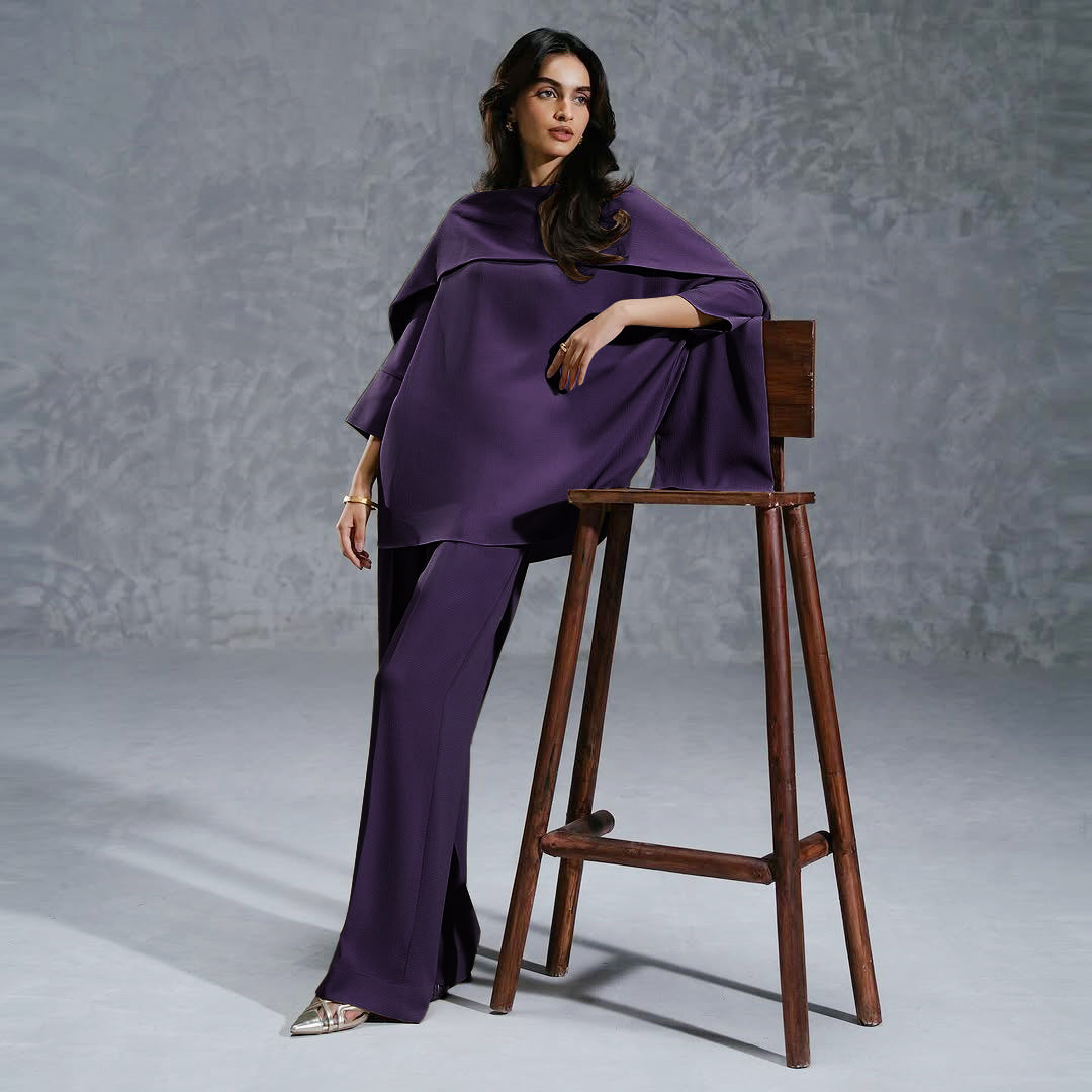 Elevate your everyday elegance with this Aabroo Co-ord Set, designed to blend sophistication with comfort. Featuring a unique draped overlay neckline and fluid wide-leg trousers, this Co-ord set makes a refined statement for both casual brunches and formal evening gatherings. Crafted in a soft, breathable fabric, it embodies effortless luxury while staying versatile for multiple occasions.