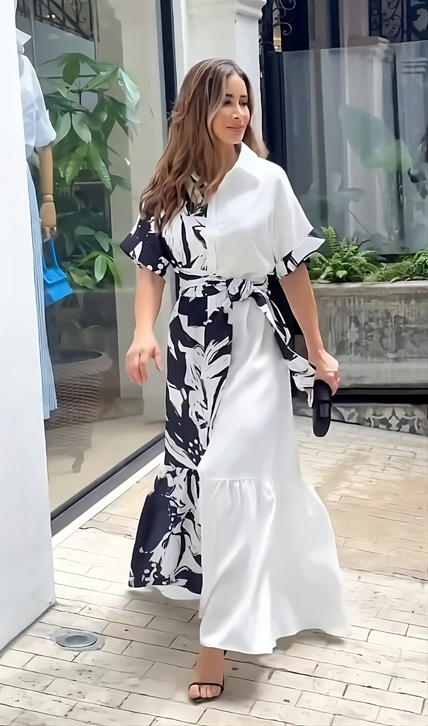 Bold meets timeless in the Monochrome Bloom Wrap Dress. Featuring a dramatic black-and-white floral composition and a waist-cinching tie belt, this piece is the perfect blend of modern elegance and feminine charm. Ideal for any occasion that calls for refined style with a statement twist.